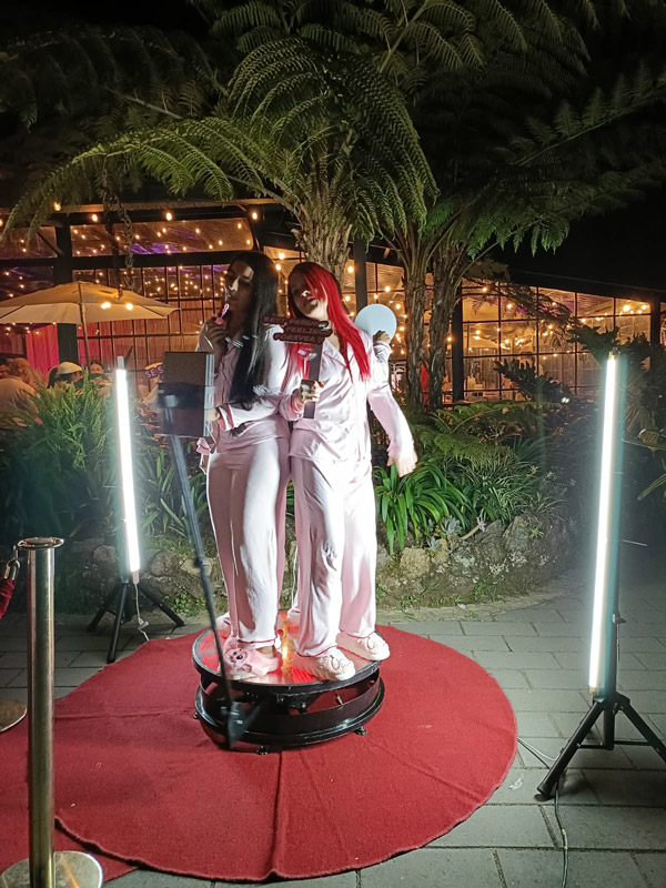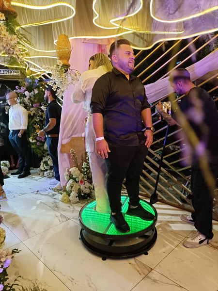 En una boda, una cabina 360° puede capturar a los novios y a los invitados en una plataforma giratoria, creando videos que muestran todos los detalles y emociones desde todos los ángulos. Este tipo de cabina añade un toque especial y moderno al evento, dejando a los invitados con recuerdos inolvidables y contenido visualmente impactante para compartir.