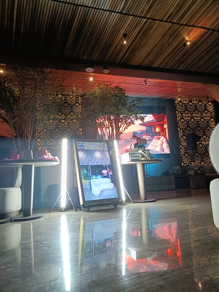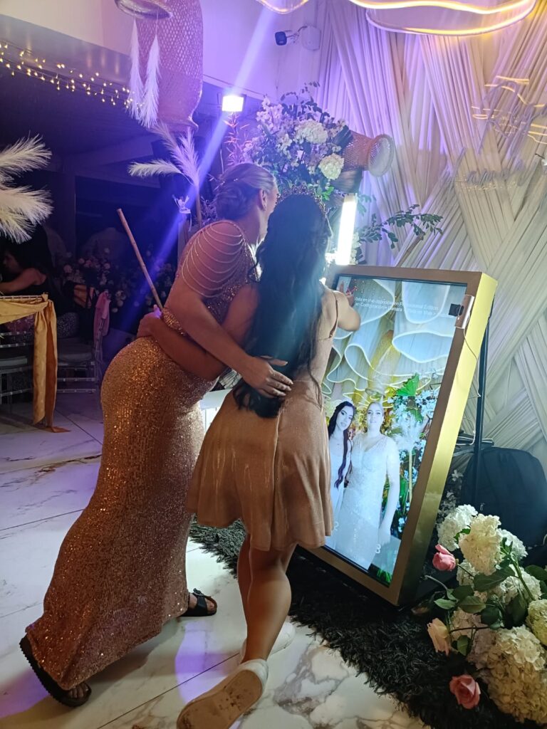 El espejo mágico combina elegancia con tecnología. A diferencia de otras cabinas, el toque interactivo genera más engagement porque los usuarios sienten que participan activamente en la creación de su recuerdo. La impresión instantánea añade ese factor “wow” que hace que los invitados lo compartan inmediatamente en redes sociales.